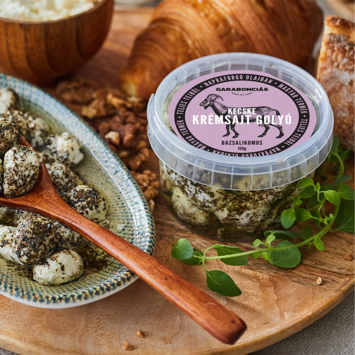 Garabonciás bazsalikomos kecske krémsajt golyó 150g - serek śmietankowy z kozim serem z bazylią