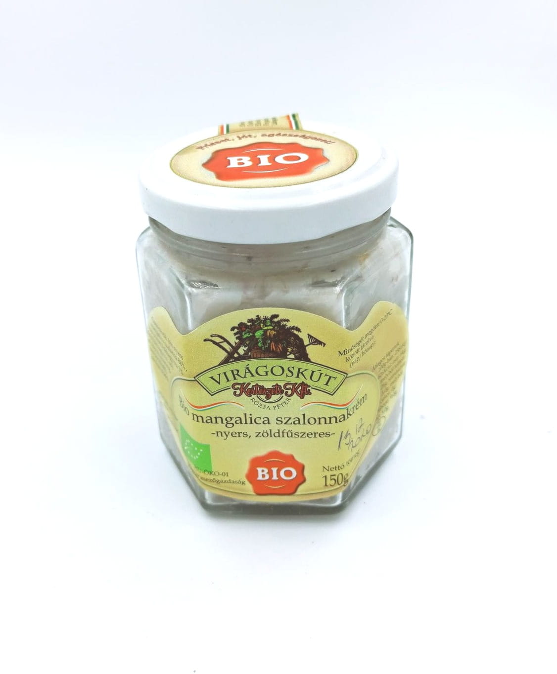 Węgierski Bio smalec z mangalicy z przyprawami zielonymi - Bio mangalica szalonnakrém (fűszeres zsír) 150g zöldfűszeres